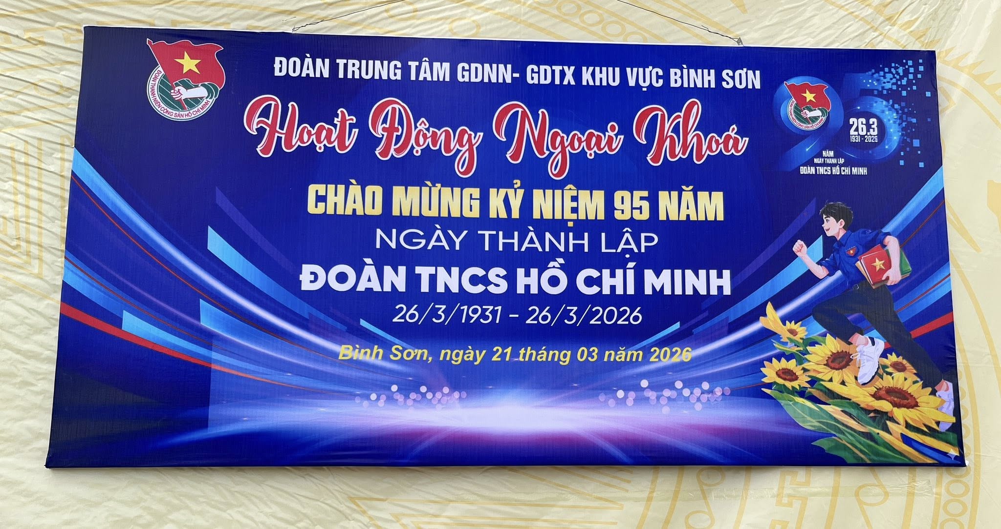 Nhân dịp kỷ niệm 95 năm Ngày thành lập Đoàn TNCS Hồ Chí Minh, xin gửi lời tri ân sâu sắc tới các thế hệ đoàn viên, thanh niên đi trước – những người đã viết nên truyền thống vẻ vang của Đoàn. Chúc Đoàn Trung tâm GDNN-GDTX khu vực Bình Sơn luôn phấn đấu vì mục tiêu, lý tưởng của Đảng Cộng sản Việt Nam và Chủ tịch Hồ Chí Minh, có tinh thần yêu nước, tự cường dân tộc; có lối sống lành mạnh, cần kiệm, trung thực, tích cực, gương mẫu trong học tập, lao động, hoạt động xã hội và bảo vệ Tổ quốc, gắn bó mật thiết với thanh niên.